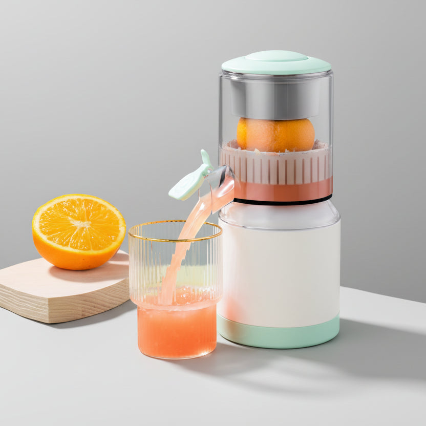 3. [High Efficiency]: Just cut the orange in half and fix half of the orange on the juicer. Automatic juice extraction at the push of a button. After a short wait, you will get a glass of fresh juice.